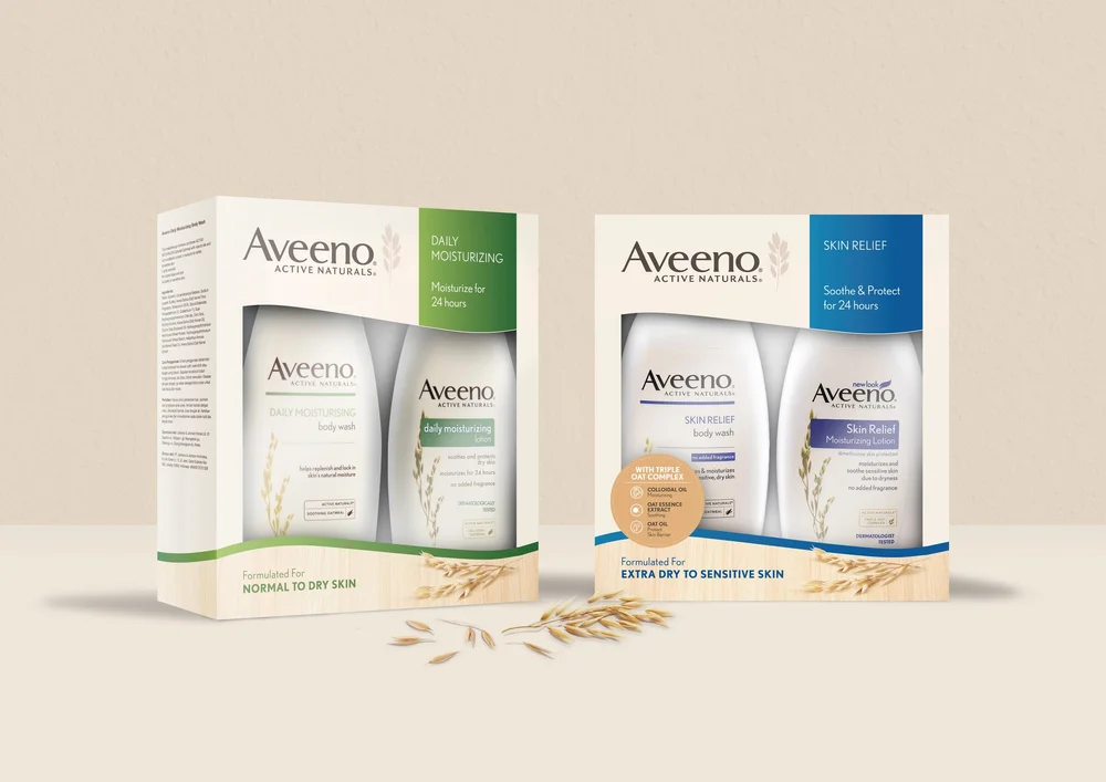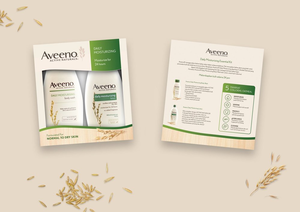 Conveying modern, fresh, authentic, and organic elements, Aveeno offers two packaging units: Aveeno Active Naturals gears itself towards women who are keen of skincare, beauty, and conscious of health, and Aveeno Baby delivers skin-friendly natural products to babies.