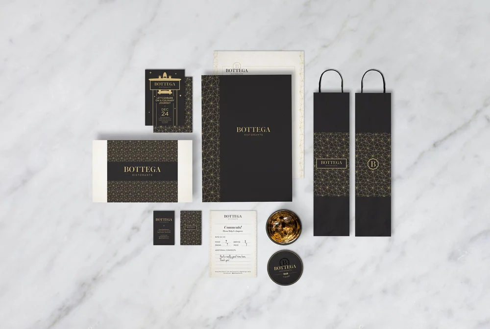 Bottega RistoranteF&B BrandWilliam GandayuwanaSat, 18 Jun 2022 16:32:00 +0000https://brandkraft.id/works/bottega-ristorante634d83a42fe8fc4ee40179b7:634d85730cf1a075a767165f:63da94273b49ef4d59cedf80Bottega Ristorante is an Italian restaurant located in the heart of the city. It's fascinating atmosphere along with it's exquisite delicacy will surely bringing everyone's sparks of life back to life. This inspires us to create a sophisticated and elegant brand that captures the spirit of "La Dolce Vita" - the good life. The logo is a classic wordmark, supported by monogram, pattern, typography, and complemented with elegant color combination. The brand is brought to life through different applications, from menu, take-aways, to the stationery.