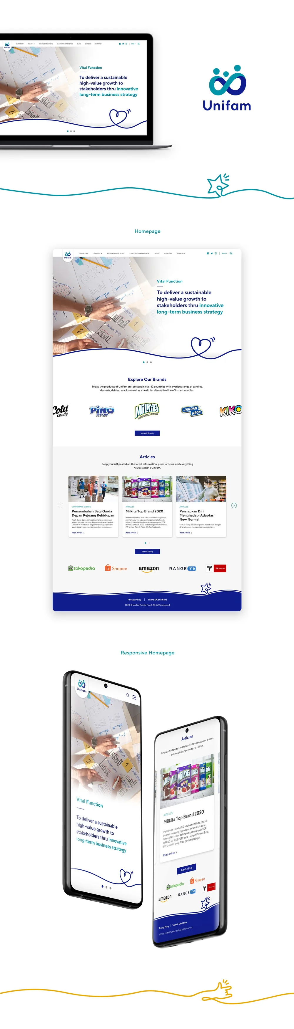The user interface design is developed from Unifam’s identity, taking a minimalistic approach, yet conveys warmth and caring. A set of icons were crafted for their team’s divisions in a simplified line drawings to radiate a friendly look. We keep the style consistent by using these “Lifelines” as symbols of Unifam’s commitment to offer their best for their consumers. The outcome was a bright, colorful, and modern website that showcase the brand’s personality.
