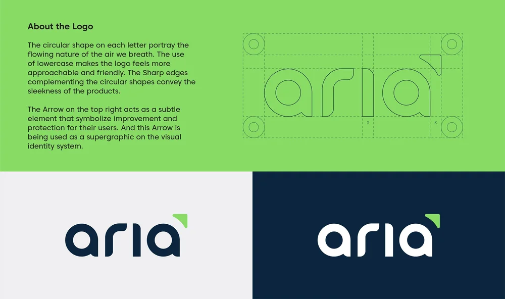 As a new tech start-up Aria needs a strong brand strategy and brand Identity to convince people of their innovation and advance technology. We created a simple yet purposeful logo that capture the company’s vision and mission. There is a clear sense of technology advancement through the overall look and feel of the brand identity. The Arrow supergraphic works as a graphical device that ties all the different brand applications and it’s a clear mark that Aria is here to make your breath and live better.