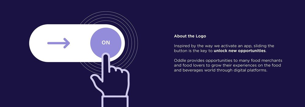 The new logo dan visual identity languages are inspired by the way we activate an app, sliding the button is the key to unlock new opportunities for the success. Oddle provides opportunities to many food merchants and food lovers to grow their experiences on the food and beverages world through digital platforms.