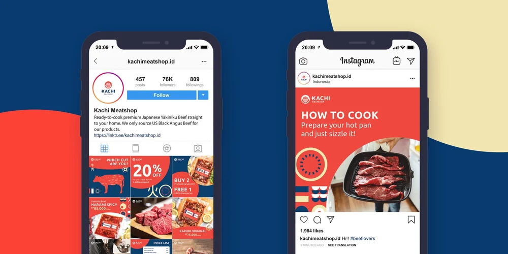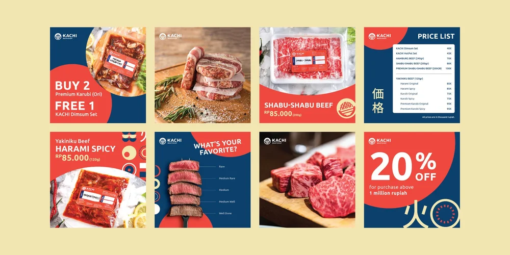 Due to the COVID-19 pandemic, Kachi flexibly adapts to the current situation and shifts their business direction. Instead, Kachi focuses on online engagement by selling frozen products on E-commerce platforms. A bold packaging and social media templates are necessary to keep the customers hooked. The established concept will be applicable to Kachi restaurant in the future.