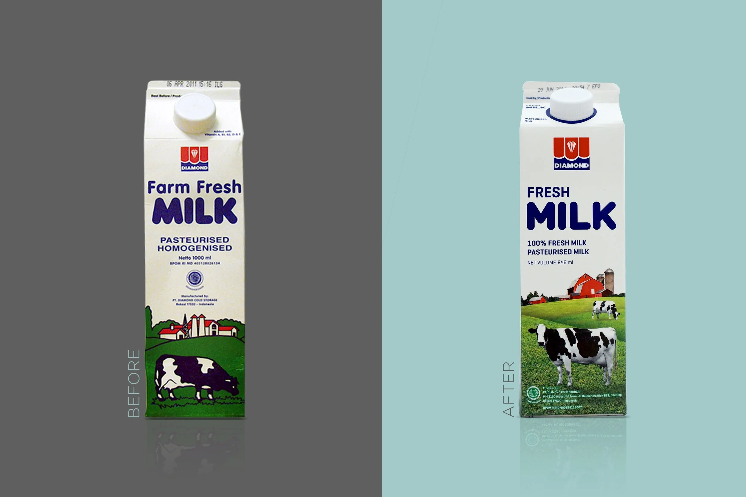 Diamond Milk is a one of the leading milk producer in Indonesia. Their product is well loved and has a strong loyal customer, but the packaging design has been left unchanged for over 20 years, so it lost some of its charm. We took an evolutionary approach in redesigning the packaging, retaining some of its equities while creating a modern look that is more relevant to the current consumer. The result is a new yet familiar packaging that captures the values of the brand: Quality and Freshness.